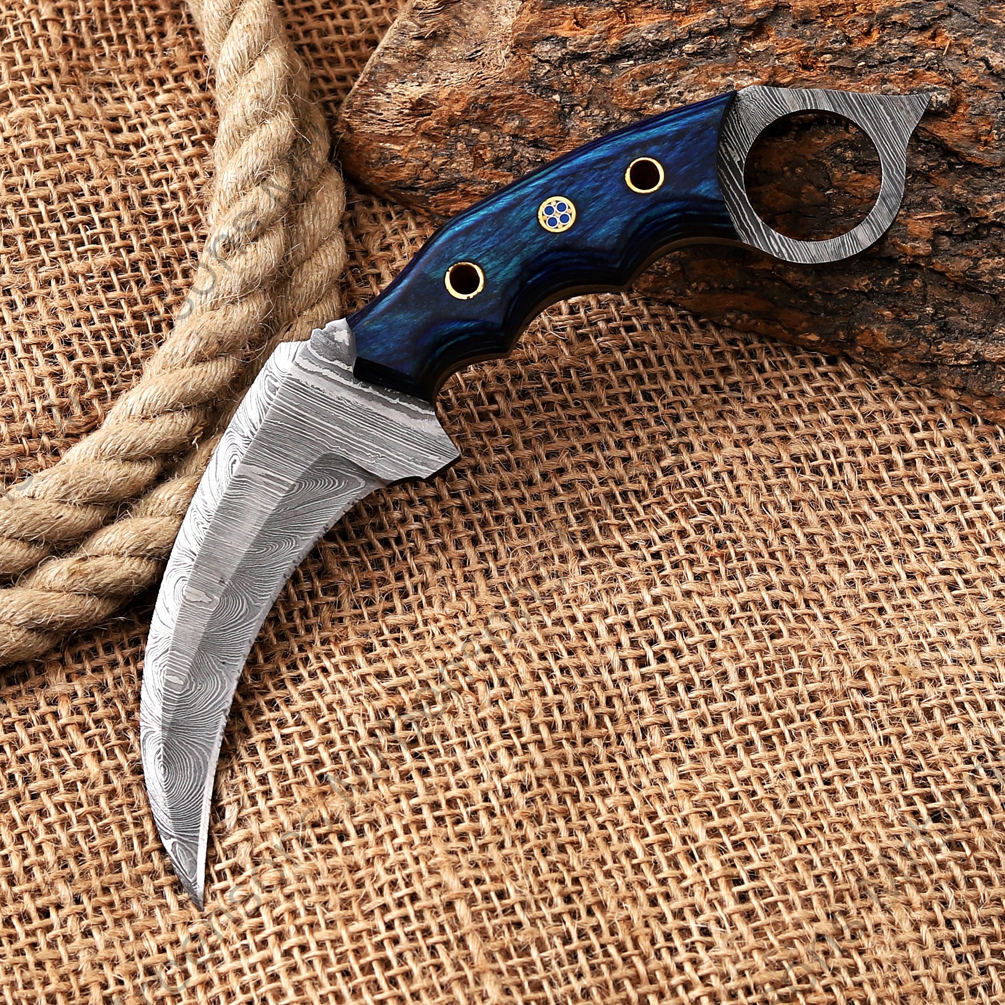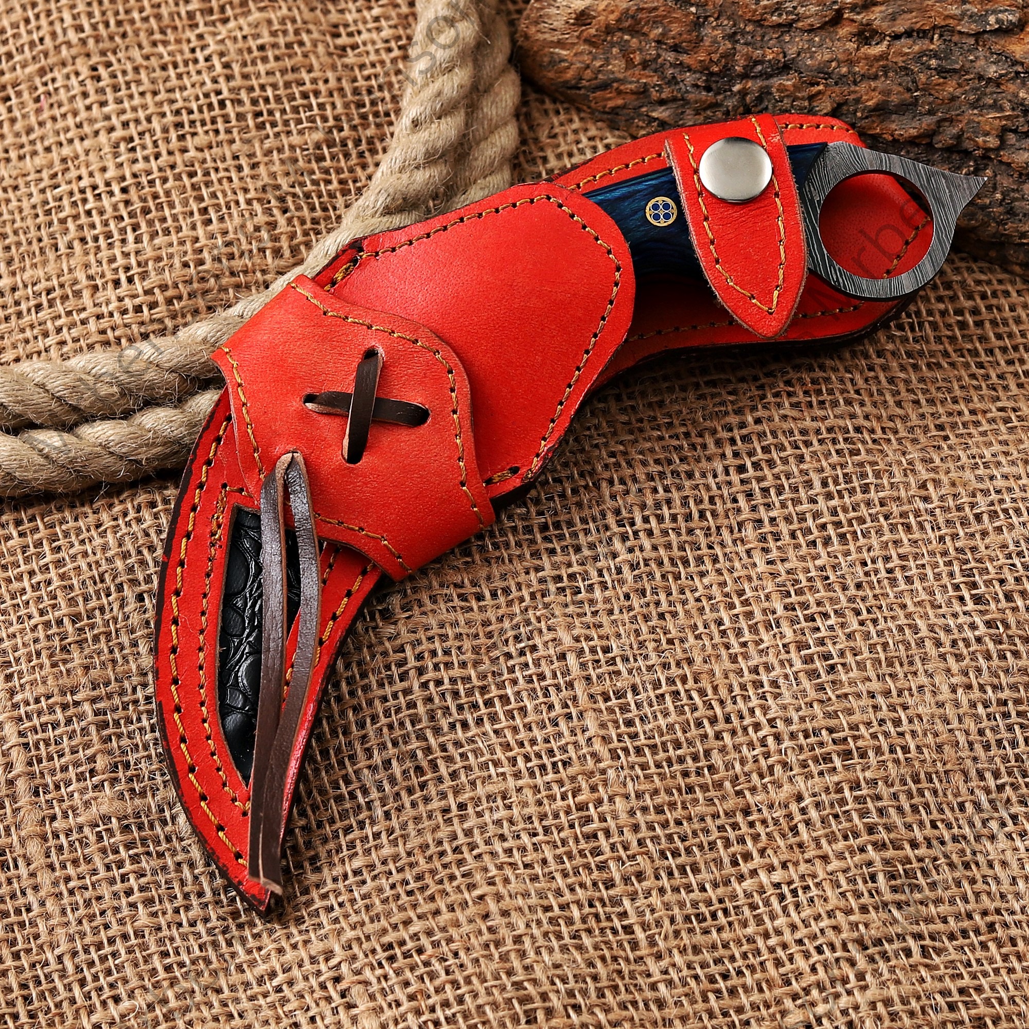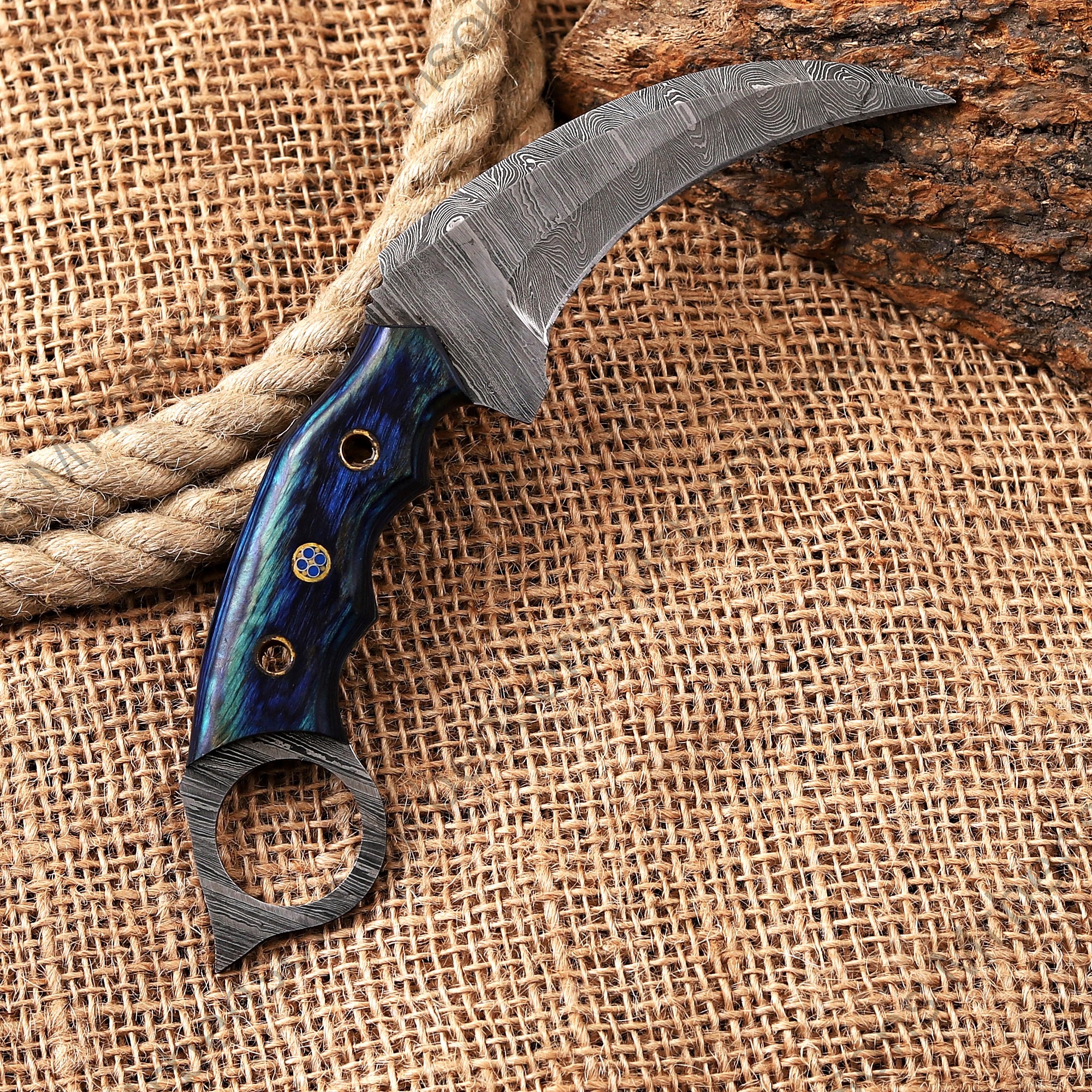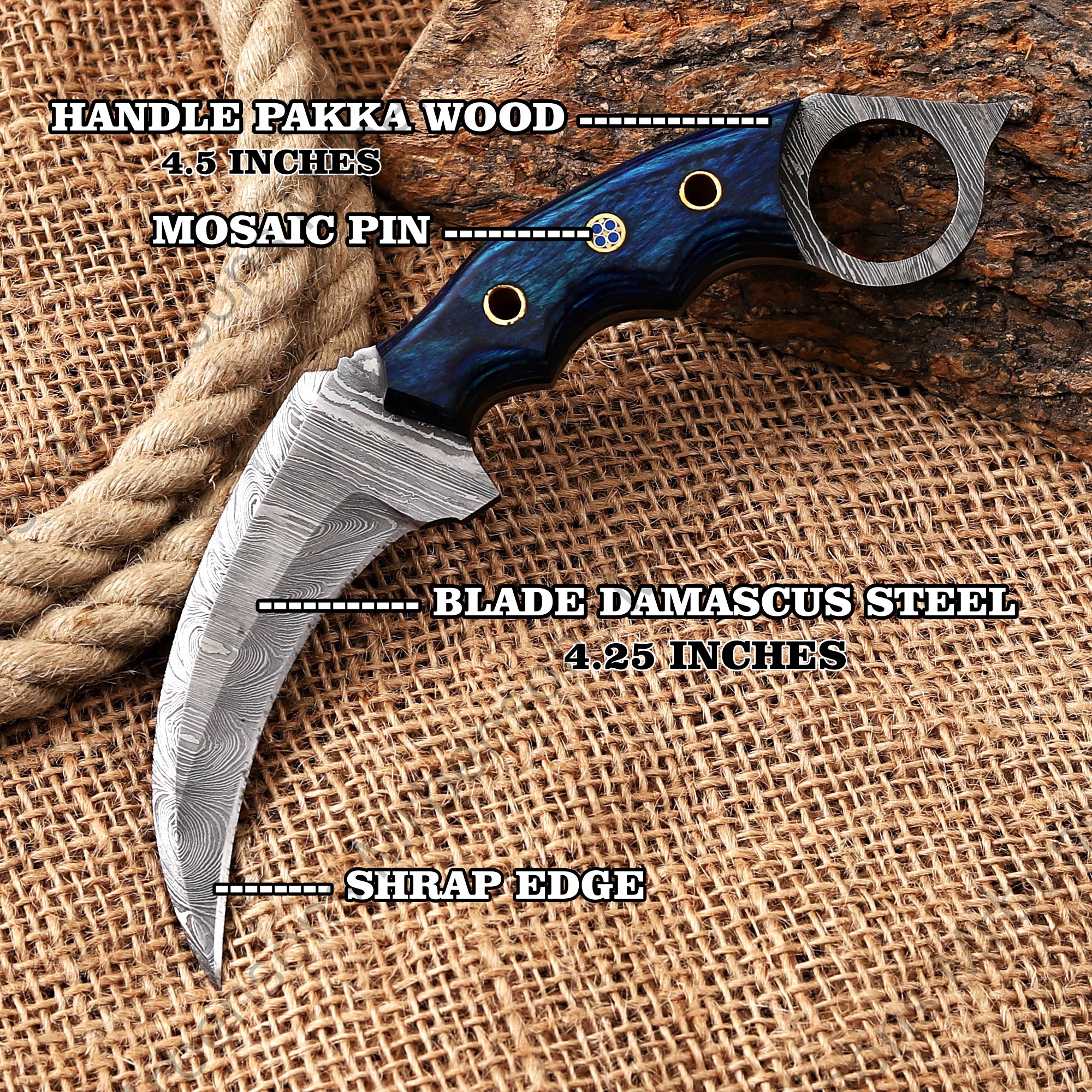 Damascus Steel Karambit Knife with Sheath: Hunting Knife, Camping Knife, Tactical Blade, Anniversary Gift, Outdoor Gift, Thanksgiving Gift.