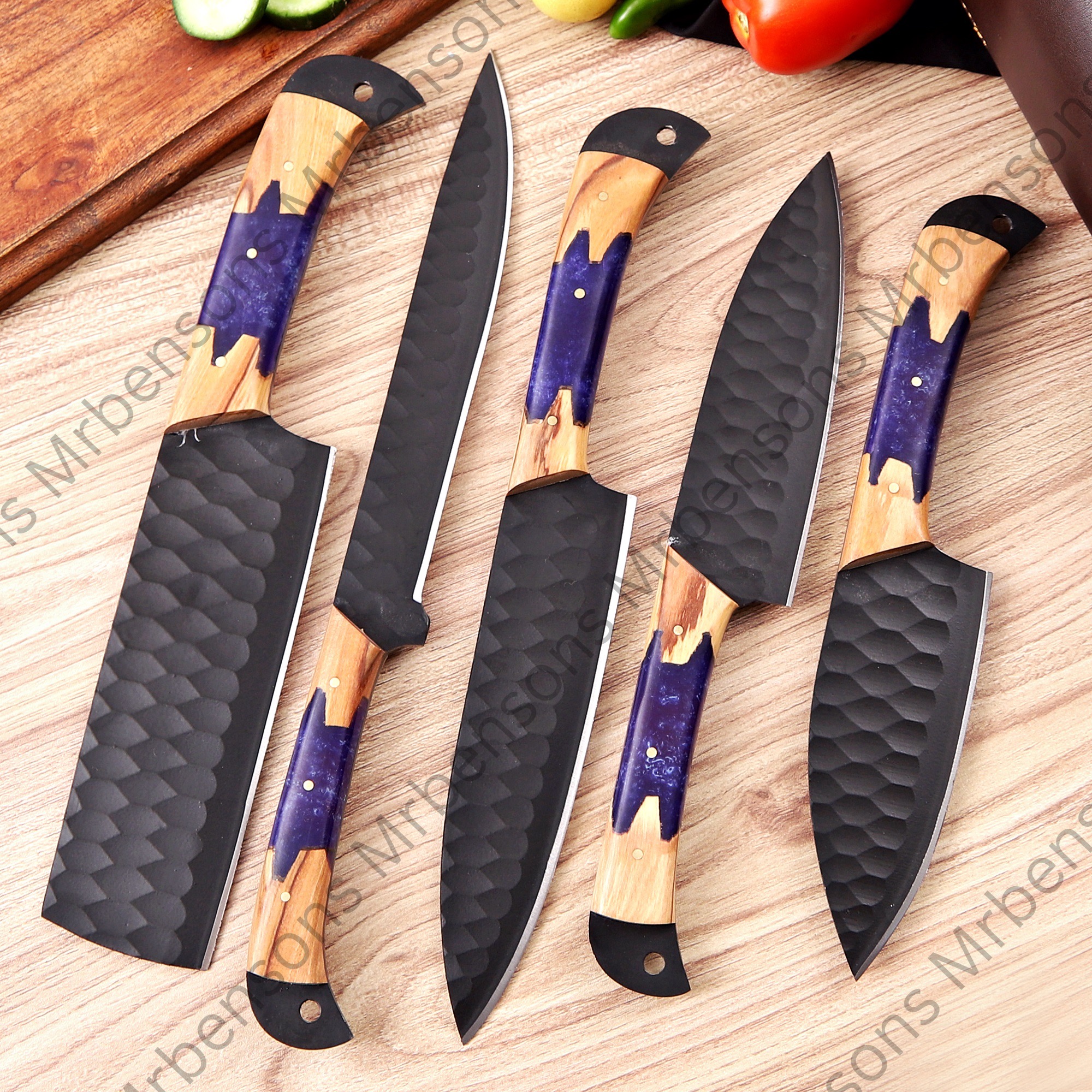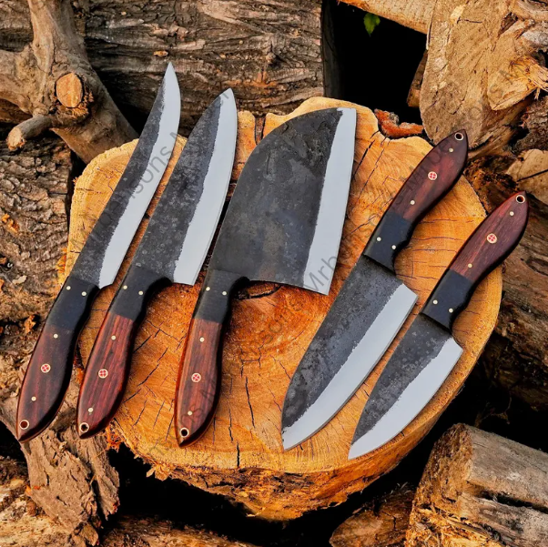 Handcrafted High Carbon Steel Set Of 5 Pcs Chef Set Kit