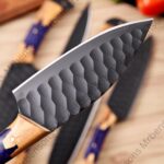 Elevate your kitchen with this Handmade Black Chef Knife Set from Diamond Forge. Featuring razor-sharp, black powder-coated blades and stunning blue resin wood handles, this multi-purpose set is perfect for professional chefs, home cooks, and BBQ lovers. Ideal as a unique kitchen gift for Christmas, birthdays, or anniversaries.