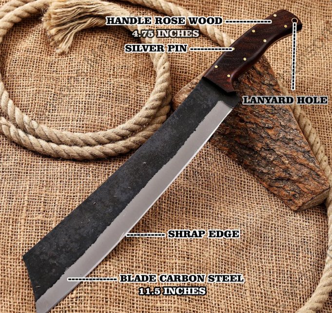 Embrace adventure with this Handmade Large Viking Machete, crafted for strength and style. Featuring a full-tang, hand-forged blade, this machete is perfect for camping, heavy-duty survival tasks, and outdoor adventures. A rugged yet elegant piece — it also makes the best Halloween gift for him or any knife enthusiast.
